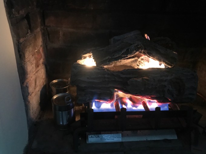 3. You make due with what you have! If you read the previous posts, you know we tore out the kitchen. Now we have no kitchen at all, not even a sink (more fun on that further down!). When tearing out our kitchen we had no idea we would end up stuck in the house for several days because of the winter storm. We have a refrigerator, bathroom sink, and fireplace. Best option of those three lead us to soup cooked in the fireplace Wednesday night! It took a while, but it works!