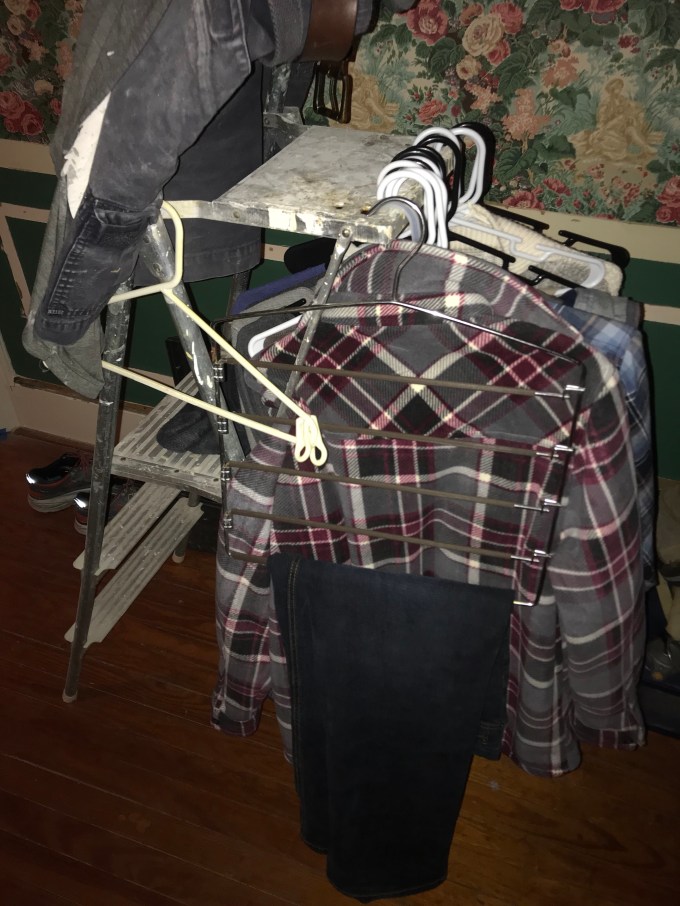 4. You get creative! There are only three closets in this house, and they are All in one room! Two of our bedrooms have no closets. Since we are living here, we obviously have clothes. No closets = a ladder for hanging clothes!