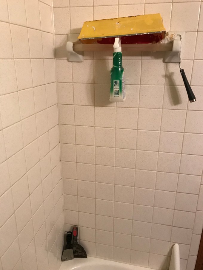 9. You never know what you’ll find in the shower! If you will recall, we no longer have a kitchen sink. Thus, all dish washing, paint brush rinsing, rag cleaning, and other water related needs are taken care of in the bathroom. So, you need up finding things like paint rollers, scrapers, and troughs! You just never know what you may find while hoping in the shower around here.