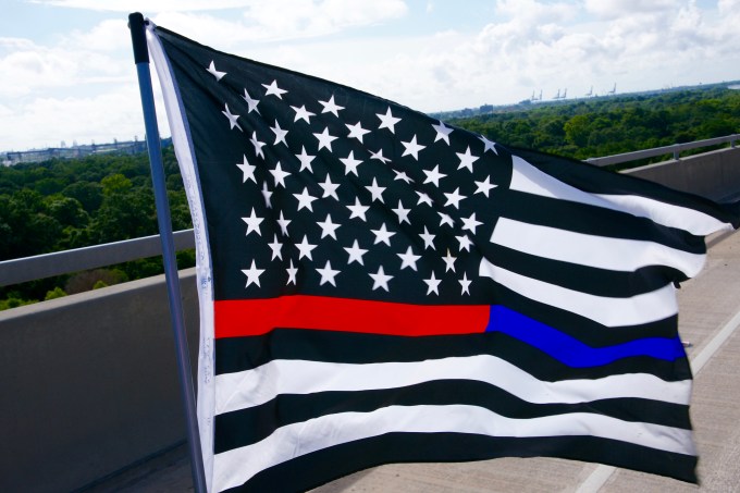This flag flies high during the ride. The red part of the stripe honors our fallen firefighters and the plus part honors our fallen police officers.