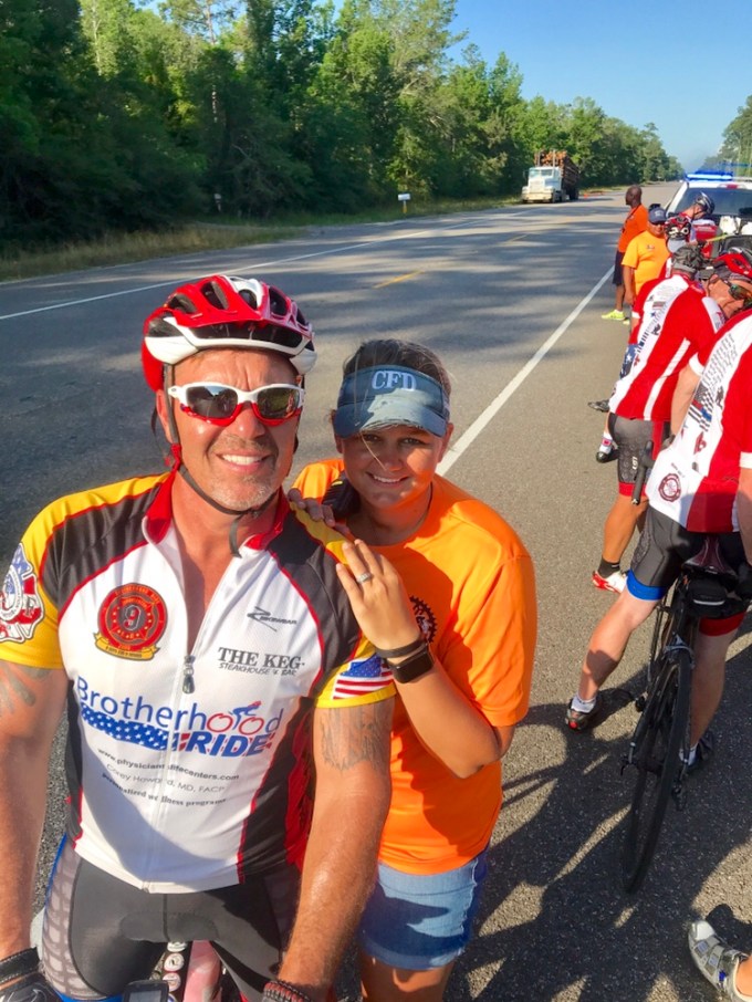 The Brotherhood Ride was founded in 2008 when fire and police officers rode from Naples, FL to Charleston, SC in honor and remembrance of the Charleston 9. Side note for those that may not know. The Charleston 9 refers to 9 firemen that lost their lives in the line of duty. At the time, it was the largest line of duty death since the tragedy of 9/11. We are both deeply connected to this loss of firemen and the unfortunate tragedy is where our story begins. The idea behind the ride is that the riders aim to show the families, towns, and departments that their loved one is never forgotten. The riders are all police and fire personnel….and by bike riders I mean bicycle! John began participating in the rides in 2011 as a rider and joined the group that rode to New York City in honor of the 10th anniversary of 9/11.